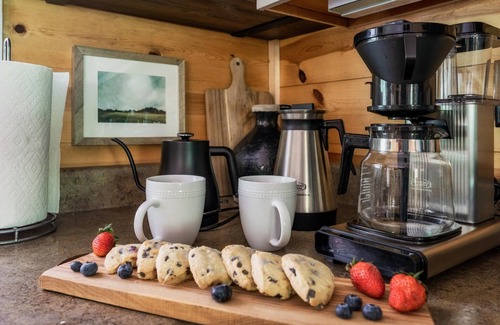 Our home has 3 bedrooms and 3 full baths. The Primary bath has an additional clawfoot tub. The Primary bedroom is quite large with fresh carpet and a very comfortable mattress. There are 4 beds total: 2 King & 2 Full (an additional inflatable mattress and “pack’n’play” are also available). We have a full laundry room and supply closet, a screened-porch, fully equipped kitchen, dining area, and ample room between the fireplace and living area. There’s also a charcoal/kamado grill above the fire pit, nestled along the driveway.