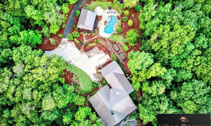 Relax in our secluded mountain cabin, a comfort-focused retreat nestled within pristine wilderness. With a pool and theater room for your leisure moments, it's a serene escape from urban hustle. Just a stone's throw from Cleveland/Helen, our cabin sits on 32 acres, blending seamlessly into 900+ acres of National Forest. Ideal for romantic retreats, family outings, or friend getaways. Enjoy a memorable stay in this serene haven amid untouched serenity and breathtaking beauty.