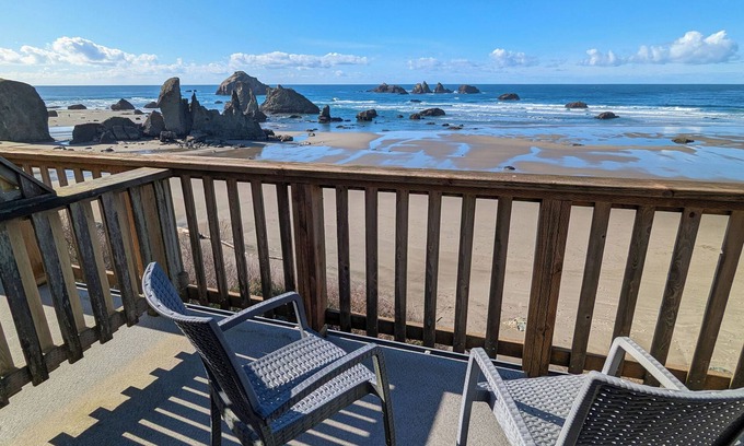 Built in the 1930's, the Face Rock Retreat triplex is a three-level home situated in the cliffs along scenic Beach Loop Drive. In addition to stunning views of one the most spectacular and interesting beaches on the Oregon Coast, this property boasts rare private access that allows you to be on the beach in less than a minute!