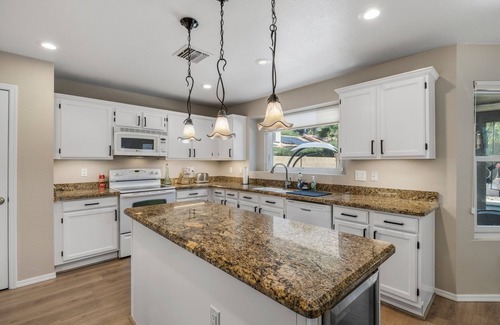 The property is designed with comfort and entertainment in mind, featuring comfortable beds with high-quality linens, two full baths, and a modern kitchen equipped with everything you need to prepare meals for your guests. Enjoy evenings by the poolside BBQ grill or engage in friendly competition with the Golden Tee arcade game. The inviting backyard space is perfect for hosting pre-wedding gatherings or post-ceremony relaxation, making it an excellent choice for those looking to merge their wedding festivities with a fun retreat.