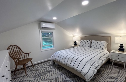 Cottage available for rent. 2bedroom/1 bath, 5 mins to train station and town. Set back on a private road adjacent to a nature preserve. Freshly updated, with a new bathroom, AC and open living space.