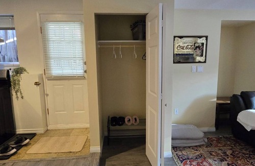 Apartment is totally separated from the main house. Has separate entrance on the right side of the house and it is not shared with any other guests. Entire unit with laundry and kitchen its yours and has only one key that you will take from lock box.