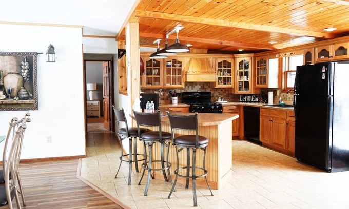 The amenities and features of North Woods Country Escape make it an outstanding choice for your wedding accommodation. The property includes high ceilings, a fully equipped kitchen, and multiple bathrooms on both levels, making it easy to accommodate all your needs. Enjoy evenings on the large backyard patio with a grill and seating, ideal for pre-wedding gatherings or post-ceremony celebrations, while overlooking a serene pond and bridge—perfect for capturing stunning photos. Plus, this dog-friendly property welcomes your furry companions, allowing every member of your family to be part of your special day.