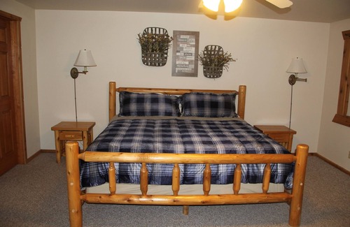 Few vacation rentals offer the space and luxury of the Cabin Fever Lodge. It gives you the beauty of the North Woods in a private and easy-to-reach setting minutes from Interstate 94 between Black River Falls and Tomah, Wisconsin. Enjoy all the area has waiting for you or simply kick back inside the lodge and reconnect with friends and family. Cabin Fever Lodge is a great place to bring a group together. The lodge has more than 4,200 square feet of beautifully decorated living space. It has 9 bedrooms, 6 bathrooms, 2 gourmet kitchens and a huge great room with a two story gas fireplace serve as your main gathering areas. The lodge comfortably sleeps 28 people.