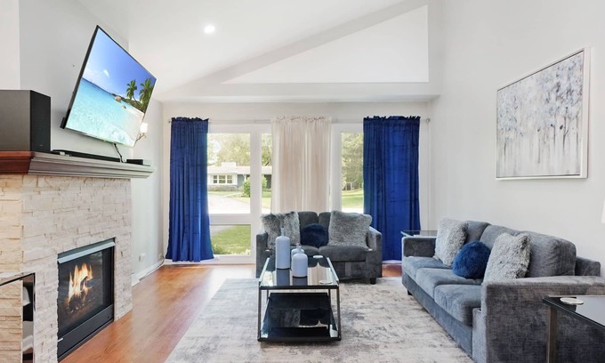 1850 SF renovated unit is 22 minutes away from O’hare Airport & 25 min to downtown Chicago! This property has 3 bedrooms, & 2 bathrooms. Master bedroom has a KING, and 2 bedrooms have a Queen. The living room has room for 1 air mattress (Total of 4 beds). Plenty of Kitchen utensils, all you need in a kitchen, including cooking spices and oils! Children friendly & lots of technology!