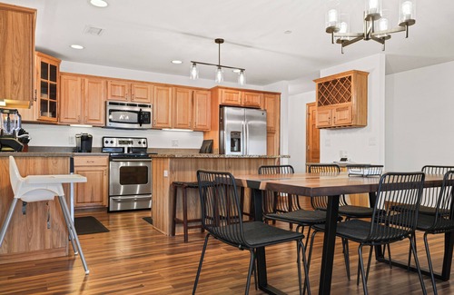 The kitchen seats up to twelve. We provide all the kitchen items you will need such as a Keurig coffee maker with a variety of coffees, a hot water maker for your tea--we also have a variety of teas to choose from. We supply all the dishes, cookware, spices, cooking oil, salt, pepper, and even have dishes for your littles if needed. You'll have all the cookware you need, and we have a high chair if needed.