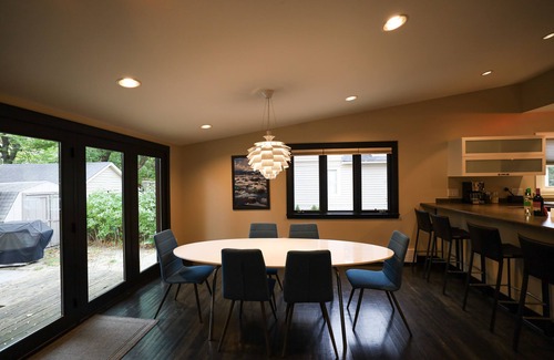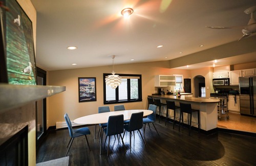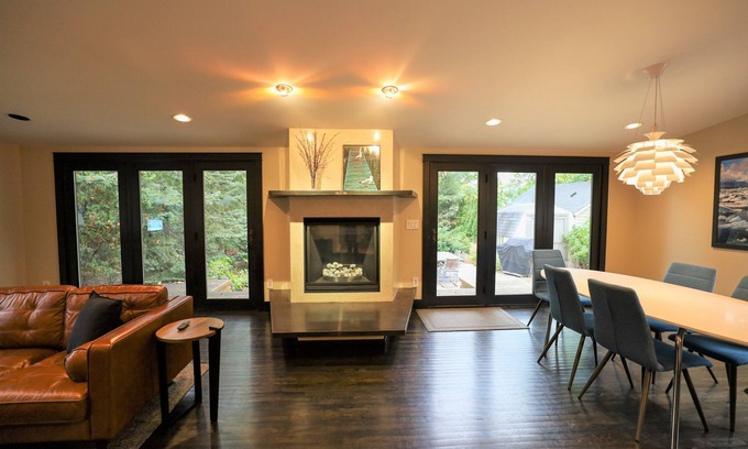 A block from Lake Superior beach! The bike path is right out your front door. The location doesn't get any better. This home is located on a quiet street in a family neighborhood with lots of kids. The kitchen/dining area is open floor plan w/ a modern gas fireplace and a large dining table. Glass doors go to the patio where there is outdoor dining, a gas grill and a large back yard. This listing is for the main floor only of the Northern Lights Nest. 3+ night minimum stay.
