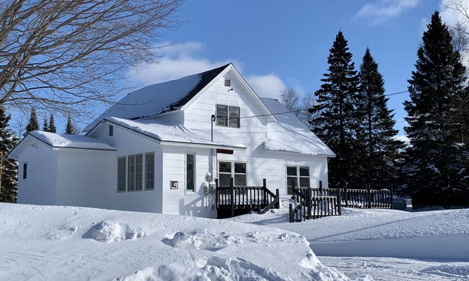 This 4 bedroom, 2 bathroom, handicap accessible home is well appointed with everything you will need for a Lake Superior getaway! Great for large or multi-families. Barrel sauna on property and beach just steps from the front deck. Home is heated by a Nest Smart Learning thermostat and door lock is keyless with a temporary 4 digit code deadbolt. Everything is brand new from floors to quartz and marble counter tops. No detail has been missed and you are sure to feel at home in this beach-front classic. Great large deck with gas grill and large surrounding yard. Large driveway. Wheel chair ramp and handicap accessible bedroom with en-suite bathroom on first floor. Large roll-in shower, rails, and pocket door allow room for wheelchairs or walkers. Large open living with 70” Smart TV and wood fireplace stove opens to large dinning room with extendable table that leads to an all-window 4 seasons sitting room facing the beach. Gourmet kitchen with breakfast nook banquet. Mud room with front load washer and dryer. Upstairs is the main bathroom with double sink, marble vanity and huge full wall mirror accented by shell chandelier. Tub/shower combo. King bed in front room. Queen bed in side room and 3 (queen, full, twin) beds in back room. All linens and towels are provided. We are 3 miles to the snowmobile trails and about 30 minutes to Mount Bohemia. Centrally located on the Peninsula and only a 4 mile drive to Calumet with shops, cafes and museums. Kayaks and stand up paddle boards available.
