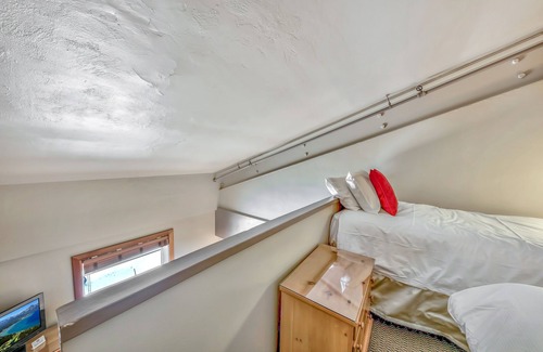 This charming two-floor loft overlooks the snowbound Village at Sugar Bowl. With a queen bed downstairs and two twin beds upstairs, this room is ideally set up for a family or small group traveling together, everyone has their own space. When the group is ready for quality time together, venture downstairs for revelry in the main floor lounge around the fireplace. If you are looking for family-friendly atmosphere, find it in the lively Belt Room or on the Village Deck, there is often live music outside on the weekends, weather permitting.