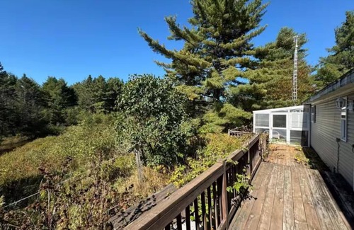 SNOWMOBILE TRAIL nearby for your winter adventures or relax in the yard with large bonfires with your friends and family. Explore or hunt the 20 wooded acres that has all wildlife. This peaceful property is remote yet 9 miles from town. This 3 bedroom 2 bath sleeps 10 people. Attached carport and 2 car garage available to store your toys out of the weather for your next days adventure. You will make lasting memories here!