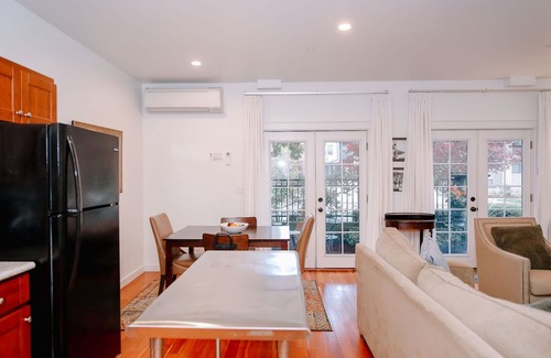 Spacious 970 sq. ft. modern spacious 1-bedroom condo style apartment on the first floor in prime NW Portland Nob Hill location just 2 blocks from NW 23rd Ave. This like-new 1,000 sq ft large condo unit, located on a quiet, dead end street in the highly desirable alphabet district, has an open floor plan featuring a bedroom with King bed, full kitchen, dining area, cozy living room space with sleeper sofa, private bathroom, and patio with dining set. Free, convenient street parking available! Nob Hill, Alphabet District, Walk score 97