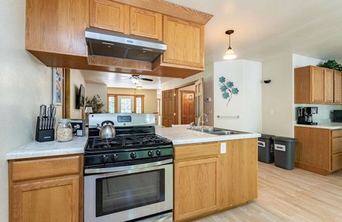 Near the lake you find a new dock, swimming raft, 2 tandem kayaks, row boat, and waterfront fire pit. The home is fully outfitted with life jackets, paddles, and fishing poles to keep everyone busy.