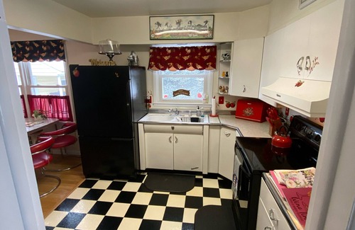The Nostalgic Retro Rectory Ranch House serves as an ideal wedding accommodation, offering a unique blend of vintage charm and modern convenience. This stylishly decorated 1950s ranch is perfectly located near popular wedding venues in Burlington, ensuring your wedding stay is both memorable and comfortable.