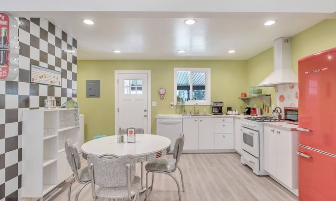 Newly remodeled 1950's retro themed home with your own private hot tub that will leave you feeling nostalgic! Located in a quiet residential neighborhood in the heart of Millcreek. Near restaurants, bars, grocery stores, shopping stores and Sugarhouse Park. 15 minute drive to Downtown and 30 minute drive to 4 ski resorts! Feel at home with the 2 bed - 1 King + 1 Queen, 1 bath and modern amenities like fast WiFi, Prime Video and Netflix apps on the TV's