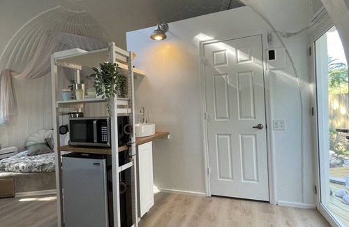 Come experience one of a kind igloo home built from eco friendly materials, and it’s unique shape saves warm/cool air since it goes in a circular motion. We offer a round bed with a lot of cozy pillows for you to sit down and enjoy your movie. There’s plenty of space for two, for you to relax and enjoy the feeling of peace, and calmness. There’s a very unique Japanese shower which you must try out! It’s all up to you, to make this experience memorable, so enjoy long walks at one of our parks which is just 3 minutes walk, the beaches and restaurants are about 10 minutes drive. Blue Moon is a perfect getaway with your other half, your friend or even just yourself to stay and feel at peace surrounded by nature. Enjoy a cup of morning coffee in a quiet, private backyard where you can enjoy fresh air and beautiful bird singing.