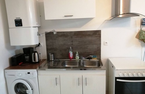 The kitchen is equipped with an oven, a stovetop, and a refrigerator, as well as a coffee maker, an electric kettle, and a microwave. And because there's access to laundry facilities, you can go a bit lighter on your packing. Other amenities include housekeeping and heating.
