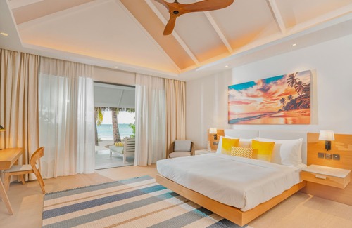 Nova Maldives offers 76 air-conditioned accommodations, which are accessible via exterior corridors and feature minibars and espresso makers. Rooms open to furnished balconies or patios. Accommodations offer separate sitting areas. Memory foam beds feature Egyptian cotton sheets, down comforters, and premium bedding. 32-inch Smart televisions come with satellite channels. Bathrooms include bathtubs or showers with rainfall showerheads, bathrobes, slippers, and designer toiletries.