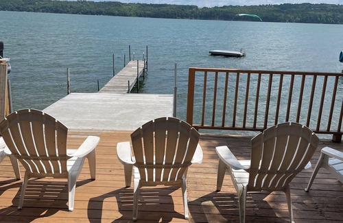 See the beautiful sunrise from your spacious deck that is right on the water. Walk on your 40' dock that has plenty of deep water for swimming and boating. Plenty of parking and space to enjoy wonderful Owasco Lake. This home has an eat in kitchen, living room, dining room and a sun porch that runs the full length of the home and overlooks the lake. Now booking Spring, Summer and Fall dates. WIFI and Cable now available.