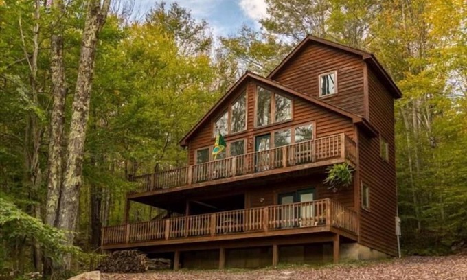 Relax in this mountain cabin tucked away in the woods, close to the town of Davis/Thomas and minutes from all Canaan Valley activities! Perfect for a romantic getaway or enjoy it with 2 couples. Floor plan offers a primary suite on lower level as well as an additional primary suite on the upper level and the living room and kitchen on the middle floor separating the two sleeping areas.