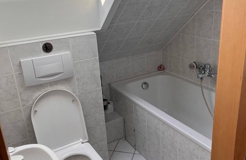 Nestled in Vellmar, this 2-bedroom, 1-bathroom apartment brings it all within your reach. Fans of nature and the outdoors will love being 6 minutes by car from Bergpark and 12 minutes from Wilhelmshoehe Park. Make short work of the 7-minute drive to Fridericianum or the 6-minute drive to Martinskirche Kassel. If you're looking to expand your horizons and see other nearby locales, you can catch a train at Vellmar Niedervellmar Station, a short 8-minute walk away.