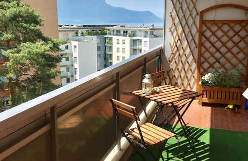 Large 42 m2 studio completely renovated on the 5th floor of the residence. Partial view of Lake Geneva, large balcony. Bathroom with bathtub and WC, wall cabinet, fully separate kitchen, dining and living area, cable TV with flat screen, DVD, ADSL Wi-Fi Internet. Elevators. It is close to all amenities: bus stop outside the residence 3 min. on foot, 4 min. walk from the station, 5 min. by the lake. Final cleaning by cleaning lady included.
