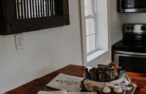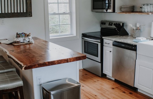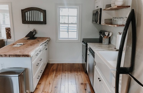 The amenities at Nubbintown Honey House leave no detail overlooked, ensuring a restful and memorable stay. You will find high-quality linens in your beautifully decorated bedroom, along with a king-sized memory foam mattress that promises you a peaceful night's sleep. The fully stocked kitchen features premium stainless steel appliances, allowing you to prepare intimate meals together. Unwind in the large soaking tub or enjoy a refreshing shower under a waterfall showerhead. With a cozy open-concept living area and a private screened patio offering picturesque views, every moment spent here feels like a cherished memory waiting to happen.