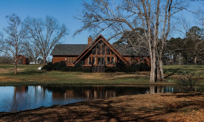 The home is a large open concept A frame house. The bedrooms are separated into two wings. Bedrooms 1 and 2 are on the west wing and bedrooms 3 and 4 are on the east wing. All of the bedroom can be locked for privacy. Every room has its own closet and sitting area. The large front and back porches offer different views of the sceneries around the home. The back porch overlooks the tranquil pond while the front porch over looks the horse pastures. Guests are welcome to bring their fishing gear to fish in our catch and release pond. Guests can enjoy a fire at night in our fire pit.