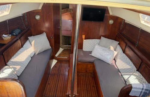 Nuit insolite sur un bateau offers accommodations in Canet-en-Roussillon, a 5-minute walk from Roussillon Beach and 10 miles from Stade Gilbert Brutus. This boat provides a bar. Collioure Royal Castle is 19 miles from the boat. With free Wifi, this 2-bedroom boat offers a flat-screen TV and a kitchenette with a fridge and stovetop. Guests can enjoy a meal on an outdoor dining area while overlooking the sea views. For added privacy, the accommodation features a private entrance. Perpignan - Rivesaltes Airport is 15 miles from the property.