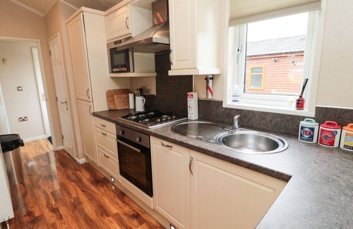 This lodge sits on the Bockenfield Country Park Felton in Felton and can sleep four people in two bedrooms.