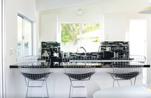 The authentic and stylish interior features iconic pieces, many original, from designers like Eero Saarinen, Charles Eames, Louis Poulsen and Harry Bertoia. Floors are cool fifties style polished concrete with stunning Warhol and Slim Aarons prints decorating the walls.