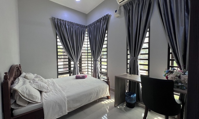 Best-rates for the Nurbayu Chalet, Kemaman starts from $28 per night with includes Security/Safety, Bedding/Linens, Wellness Facilities, Child Friendly, Internet, Parking, Pool, Balcony/Terrace, Guest Services, Laundry, Air Conditioner, TV with all other amenities. Perfect for Weddings is committed to ensuring every guest experiences a comfortable and extraordinary stay, whether planning a romantic getaway, a honeymoon, a pet-friendly stay, or celebrating with the entire wedding party.