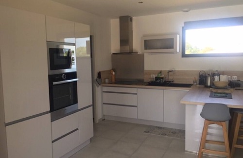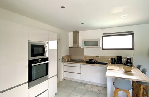 Fully equipped kitchen, oven, microwave, dishwasher, washing machine, kettle, coffee maker, toaster, iron and ironing board, outdoor gas griddle, hair dryer... cot and high chair