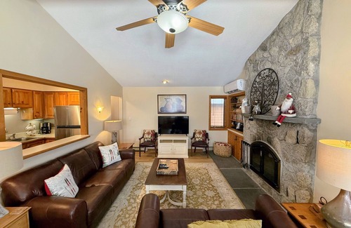 -Air Conditioning for year-round comfort, cozy stone fireplace, washer/dryer, free Wifi, private outdoor space, and it's dog-friendly!