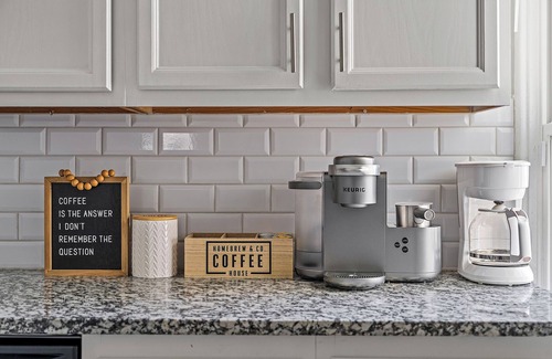 Culinary Convenience: The fully stocked kitchen features modern appliances, including a Keurig coffee maker, allowing you to prepare delicious meals and snacks during your stay.
