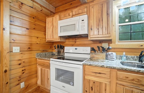 Nestled on a private lot in Hocking Hills, Oak is an intimate retreat for couples. This cozy log cabin features a stone fireplace, a well-equipped kitchen, and a serene bedroom with plush bedding. Enjoy the spacious deck and hot tub surrounded by lush forest, offering both seclusion and easy access to nearby natural wonders. Perfect for a romantic getaway, Oak combines rustic charm with modern comfort in a tranquil setting. Must be 21 years or older to rent. AWD/4WD Recommended.