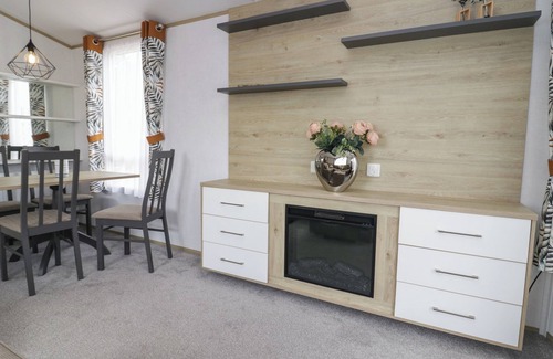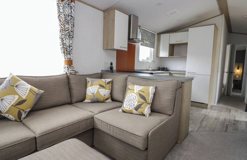 Oak, a single-storey lodge, consists of an open-plan living space including a kitchen with electric oven, gas hob, microwave, and fridge/freezer, a dining area with seating for four, and a sitting area with Smart TV and sofa bed. The bedrooms consist of a double with en-suite basin and WC, and a twin, along with a shower room. WiFi, fuel, power, bed linen, and towels are included in the rent. Outside, there is a non-enclosed side decking with furniture and off-road parking for one car. One well-behaved dog is welcome. Sorry, no smoking. Shop 1.2 miles, pub 1.1 miles. Enjoy all of this and more by booking Oak. Note: Although this is a single-storey property, there are steps up to entrance, please take care. Note: The sofa bed is for flexible sleeping arrangements and not for an extra two guests.