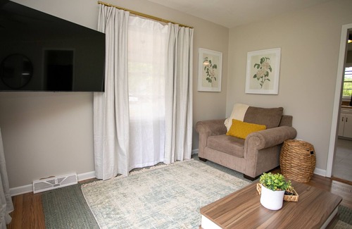 Located 20 minutes from Charlotte, you can experience the best of this small town retreat while being conveniently located to many local attractions. With WiFi, two dedicated work spaces, and a coffee shop within walking distance, the Oak Street Retreat is the best location for your next business trip, event weekend, or staycation. Smart TVs, fully stocked kitchen, on site laundry, and all of the comforts of home are yours to enjoy in this lovingly updated 1960s ranch.