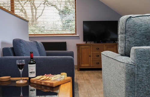 Relax in the cosy living area with a flat-screen TV and streaming services making Oak View Lodge feel like home from home.
