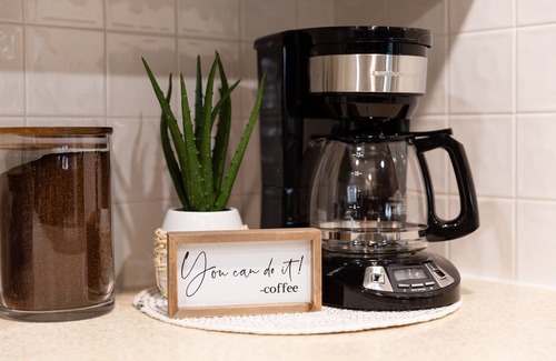 Coffee maker is a standard drip coffee maker, bring your own coffee.