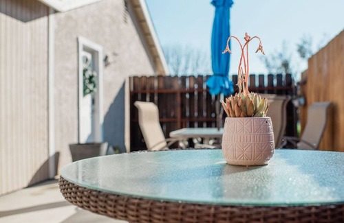 Welcome to Oaks and Grapes Getaway, a delightful retreat tucked away on a quiet cul-de-sac in Paso Robles. This cozy one-bedroom, one-bath Airbnb exudes tranquility, with its private yard offering a peaceful and cozy escape. While there is no traditional stove or oven, we have thoughtfully provided a compact portable stove with two burners for your convenience, allowing you to whip up a quick meal and sip on wine out on the patio under the stars.
