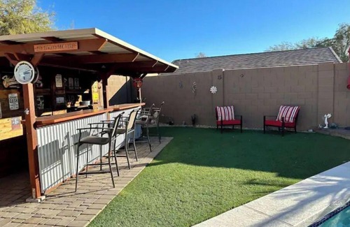 Oasis backyard centrally located only 15 minutes away from the stadium. A spacious three bedroom 2 1/2 bathrooms two-story home located in the heart of Goodyear. Fully furnished two queen beds, one king size bed, and a fold out sofa. He has a dedicated office space and a game room. It also has two separate living rooms .a swimming pool and a heated hot tub. It also has an outside bar and grill. Weekly and monthly rates available.