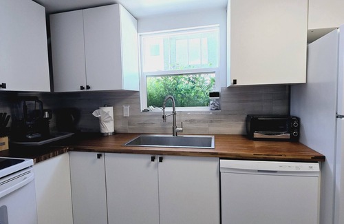 Our "Oasis on East Bench" is a newly renovated apartment in the popular Brick Yard/Sugarhouse area. It features a brand-new kitchen, 2 large bedrooms with queen beds, a spacious living room, and off-street parking. The private space has a Zen, clean, and artistic theme, and includes a ski/work setup, a dining area/work area, and on-site laundry. It is the perfect place to stay for those visiting Salt Lake City for business or pleasure