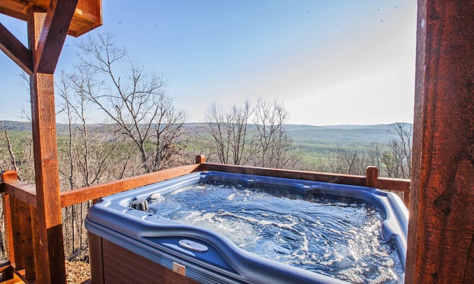 Oasis sits at the top of the mountain ridge. Views for miles! This large property features 4 additional cabins! Lovers Lair, Hillbilly Hideout, Sunrise Sanctuary and Chipmunk Cottage couples are our specialty! It offers stunning views of the mountain range and amazing one of a kind sunrise views. You can enjoy the views from the hot tub, hammock for two or the dining area on the deck or even from the comfort of the easy chair or couch in the living room. If hiking and exploring is on your list. We are surrounded by Three Rivers Wildlife Management Area, which offers thousands of acres of wooded wildlife area.