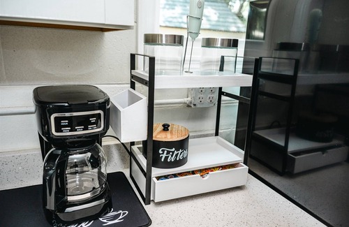 . Fully Equipped Kitchen: Channel your inner chef in our fully stocked kitchen, complete with all the essentials for preparing delicious home-cooked meals. Start your day right with our diverse coffee station, offering a variety of options to suit every taste preference.