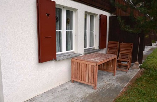99 m2. More information by the provider: 4 room apartment (99sqm on 2 floors) in a chalet with several apartments. Quiet and sunny location close to the Eggli cable car and the cross country ski runs. Small terrace. Approx. 10 minutes walk to the car-free centre and shopping area. Ideal starting point for summer and winter hikes. Skibus stop 50m from the chalet (only in winter). Washing machine and tumble dryer are available for common use in the chalet of the building management.