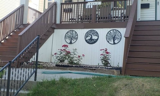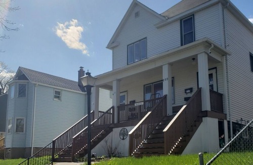 Sits on Observation Hill. Features 4 separate beds, 3 separate sleeping areas, vintage/victorian bathroom, artwork by local artists, and in-unit laundry. Less than 1 mile from Canal Park, Bayfront, AMSOIL Arena, and the DECC. 6 blocks or less to Downtown, Traverse Trail, Lake Superior Hiking Trail, and Enger Tower. Less than 2 miles to the Craft District. Enjoy some views of the lake, lift bridge, and bay. Great for a short trip or an extended stay. This is an upstairs apartment with a couple sets of stairs to get into the apartment.