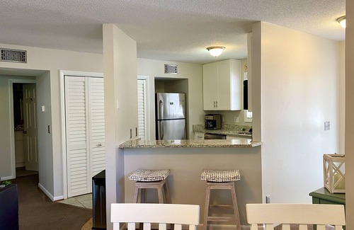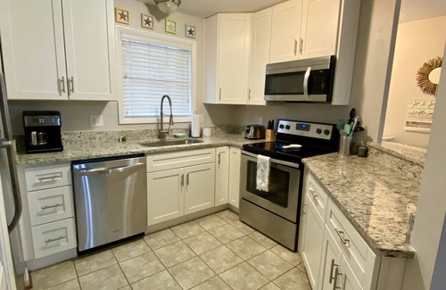 Dare To Dream is a completely remodeled 2nd floor condo in the heart of the Outer Banks - Kill Devil Hills, NC. We are tucked back in a lovely, quiet Soundside neighborhood only 1 mile to the beach and an easy bike ride if you wish. Working from home? Enjoy a working vacation at the beach! We have high speed wireless internet as well as a small desk with a power strip for multiple devices. Close to restaurants, shopping, the Wright Brothers National Memorial, Mini Golf and grocery stores plus the wide expanse of shoreline with 32 public beach access areas in Kill Devil Hills alone. There is a wonderful bike/walking path that winds for miles through the neighborhood and down to the Sound so plan to bring your bikes! Enjoy the beautiful outdoor pool and tennis courts that are available for guests ,or walk a short distance down to the end of the canal where it meets the Sound. It's here that you will see some gorgeous sunsets ! There are a few areas along the canal for experienced kayakers to launch into the Sound and our young guests will enjoy occasionally seeing ducks and turtles in the canal also. One of our favorite things about the condo is the covered deck. It provides a peaceful spot for morning coffee and evening beverages or just an escape from the heat. Overlooking live oak trees and the canal ; it is a great place for wildlife watching. Dare To Dream is a spacious and well appointed retreat for 2 couples or a family; furnished with 2 comfortable Queen beds and 2 full bathrooms boasting a rain shower in the master. There is an electric fireplace in the living room for cozy evenings as well as the convenience of a washer/dryer unit in the condo. You will find the kitchen with newer appliances to be well stocked for all of your cooking needs. The Smart TV's in the living room and each bedroom are equipped with Roku TV for your favorite streaming accounts as well as Spectrum TV for many popular channels plus local ones. Between a wide variety of attractions to some of the best fishing on the east coast, your visit to the Outer Banks can be everything you're dreaming of !