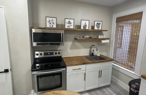 Welcome to our cozy mother-in-law suite in beautiful Ocala! This charming space offers everything you need to feel at home during your stay. The suite features a comfortable bedroom with a king size mattress, a spacious living room with a sleeper sofa for additional guests, a full kitchen equipped with all the essentials to prepare your meals, and a private bathroom. The highlight of this suite is the sunroom with a functional claw foot tub offering a unique and relaxing bathing experience while enjoying the warmth and brightness of the sun. Whether you're visiting family, attending events, exploring Ocala, or a romantic getaway our mother-in-law suite provides a peaceful and relaxing retreat to return to after a long day.