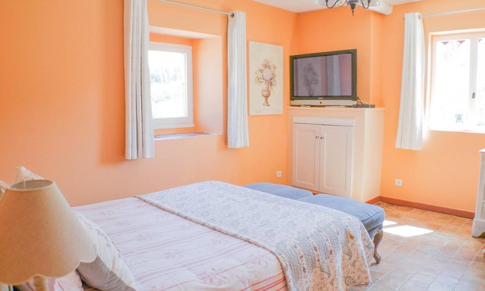 Your stay in the Occitane-Double room-Comfort-Ensuite with Shower includes a range of luxurious amenities designed to enhance relaxation and enjoyment. Each room is thoughtfully equipped with air conditioning, TV, and complimentary Wi-Fi, ensuring you feel at home during your visit. Unwind in the wellness area complete with a heated pool, sauna, and jacuzzi, or indulge in professional massages arranged by reservation. In the evenings, savor delectable meals prepared by the chef at the table d'hôte, featuring local and vegetarian dishes served under the stars by a romantic fountain or in the spacious dining room.