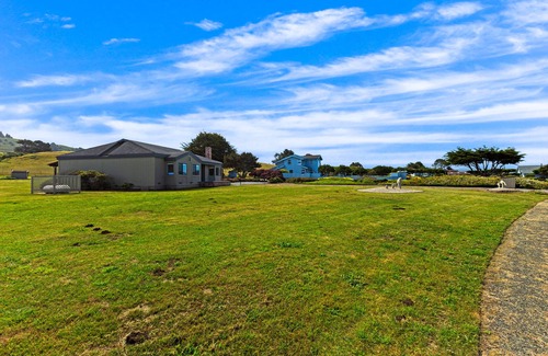 Enjoy the peace and quiet you’ve been longing for at this inviting ocean view house! The large and cozy back porch provides plenty of seating and is the perfect spot to kick back, relax and take in the hillside views. The large backyard is perfect for a volleyball or badminton game if guests bring their own net and ball. Gather in the living room area with your group and spend the afternoon eating snacks and playing board games. The fully-equipped kitchen and the dining area with enough seating for everyone are ideal to enjoy a tasty meal together before heading out to explore the large patio and surrounding area. Take a 5 minute walk to private Sunset Beach to revel in the beautiful rock formations. Bring a kite to fly, hunt for shells and sand dollars, build a fort out of driftwood, or just enjoy the stunning scenery of the Northern California Coast.